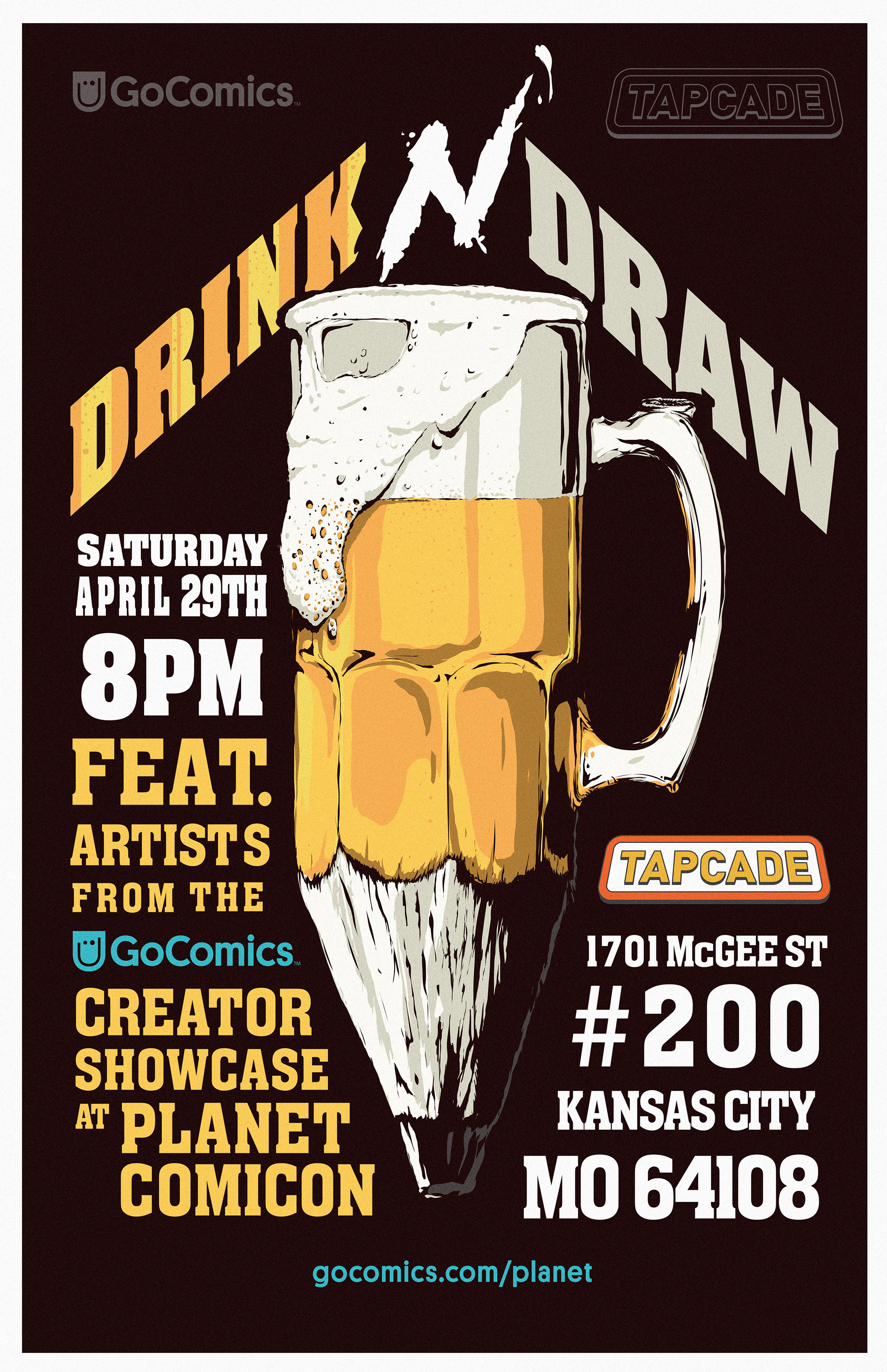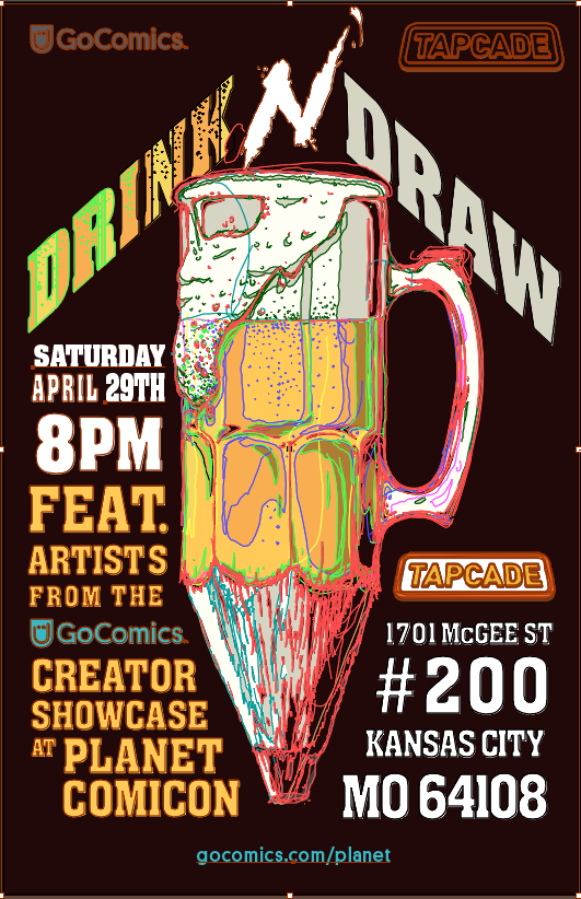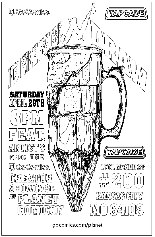 Drink N' Draw poster for GoComics and Tapcade event in Kansas City.